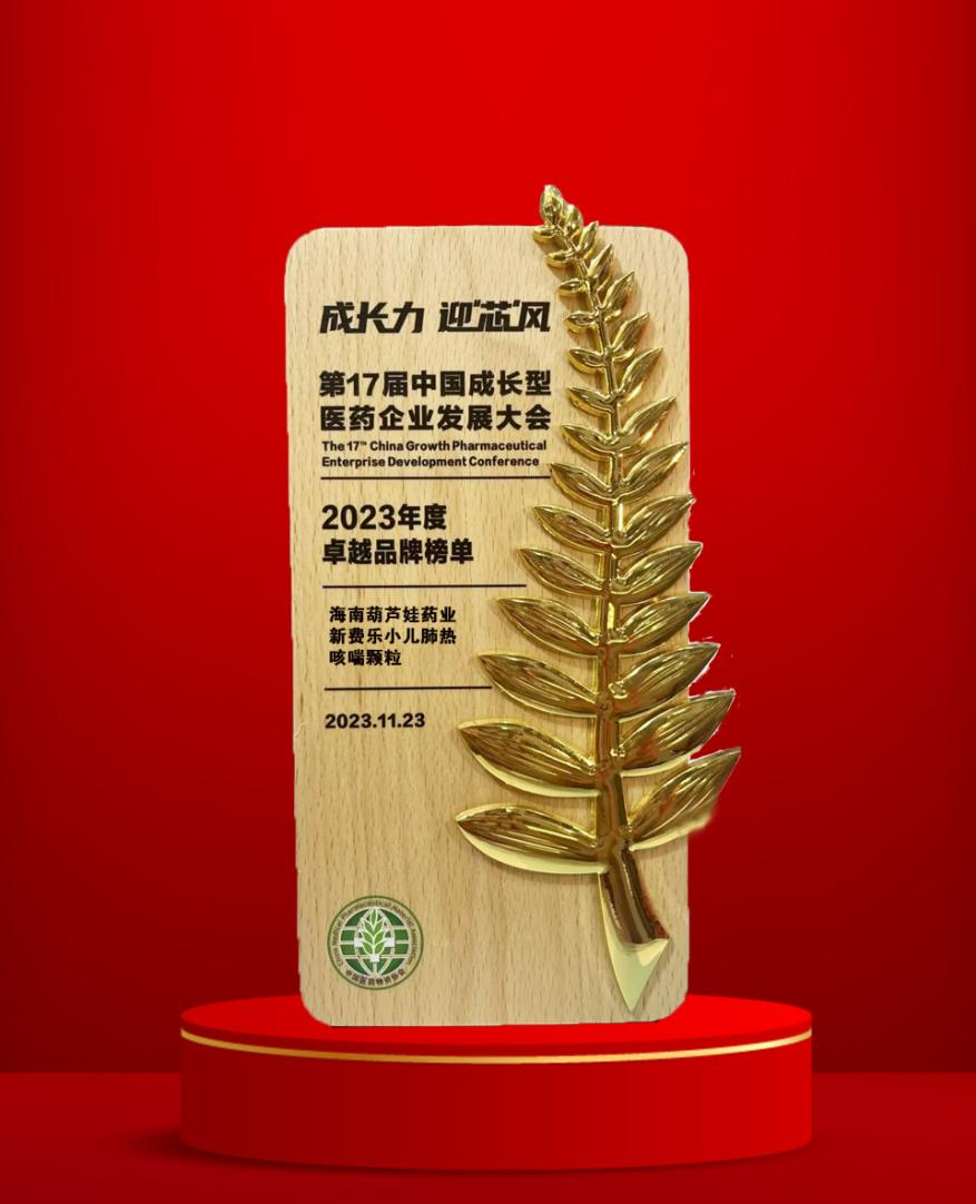 11月22日至25日,由中国医药物资协会和厦门市人民政府主办的第17届中国成长型医药企业发展大会在厦门拉开帷幕。会上,九游会药业集团党委书记、董事长刘景萍获得“金叶奖·2023年度医药行业风云人物奖”,集团旗下产品新费乐®小儿肺热咳喘颗粒荣膺“2023年度卓越品牌奖”。